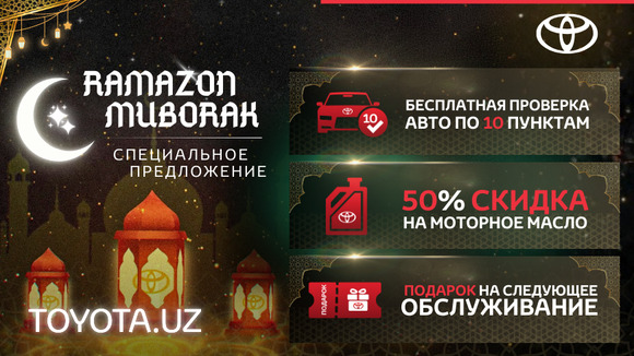 Официальный дистрибьютор автомобилей и запасных частей марки Toyota в Узбекистане — ИП ООО Summit Motors Central Asia — объявляет о запуске специальных сервисных предложений, приуроченных к священному месяцу Рамадан.