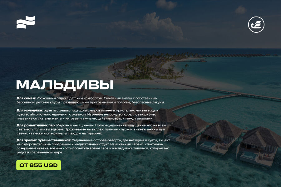 Для зрелых путешественников: уединённые острова-резорты без шума и суеты, акцент на оздоровительные программы и медитативный отдых. Изысканный сервис, спокойное созерцание океана, возможность посвятить время себе и насладиться тишиной, такой редкой в современном мире.