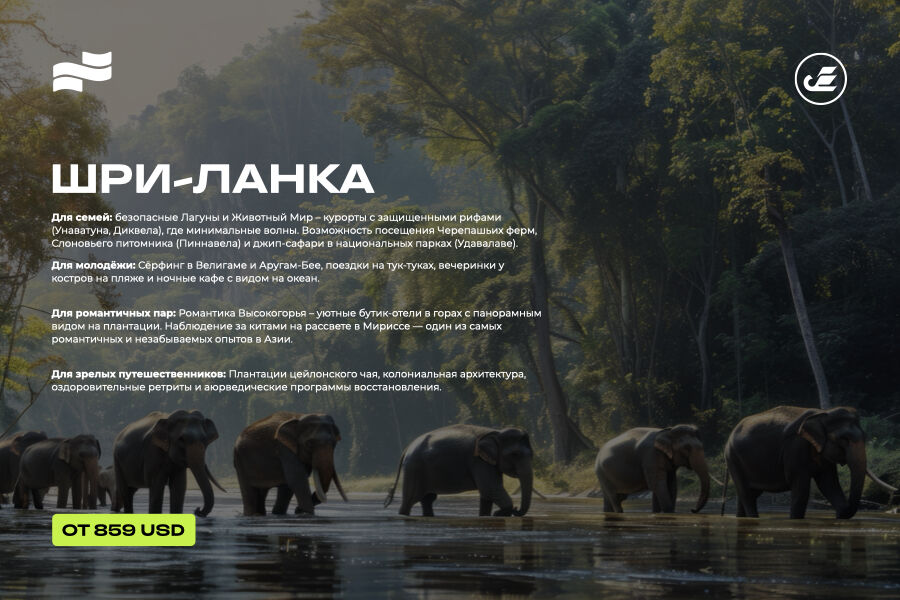 Для семей: безопасные лагуны и богатый животный мир: курорты с защищёнными рифами (Унаватуна, Диквела), где минимальные волны. Возможность посещения черепашьих ферм, слоновьего питомника (Пиннавела) и джип-сафари в национальных парках (Удавалаве).