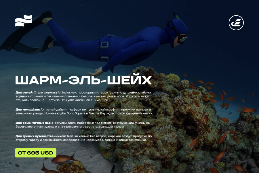 Шарм-эль-Шейх — это круглогодичный курорт, где главное сокровище находится не на пляже, а под водой. В то время как другие средиземноморские направления остывают, Красное море остаётся тёплым, а видимость в нём достигает идеальных значений.