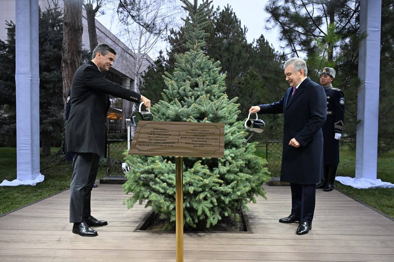В завершение узбекско-парагвайских переговоров главы государств посадили дерево на Аллее почетных гостей.