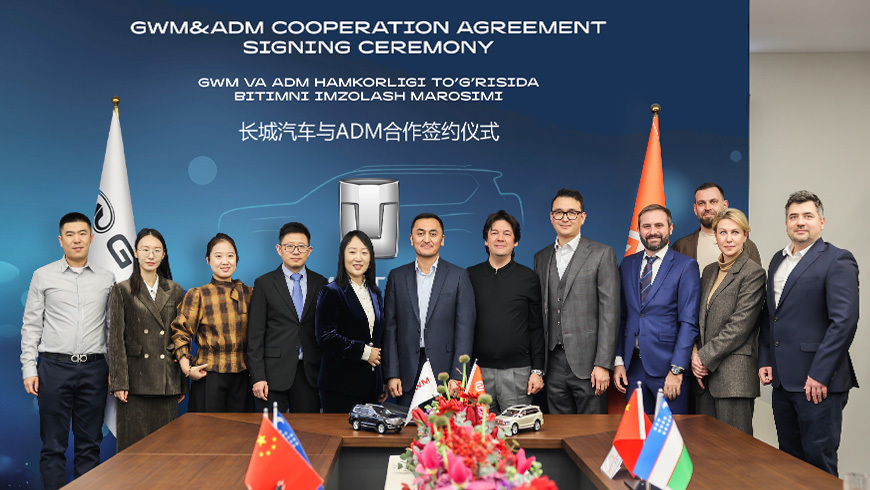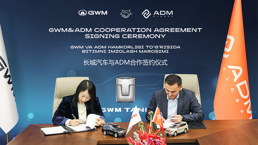 9 февраля группа компаний ADM и китайский автомобильный концерн Great Wall Motor (GWM) подписали соглашение о сотрудничестве, предусматривающее дистрибуцию автомобильного бренда TANK на территории Республики Узбекистан.
