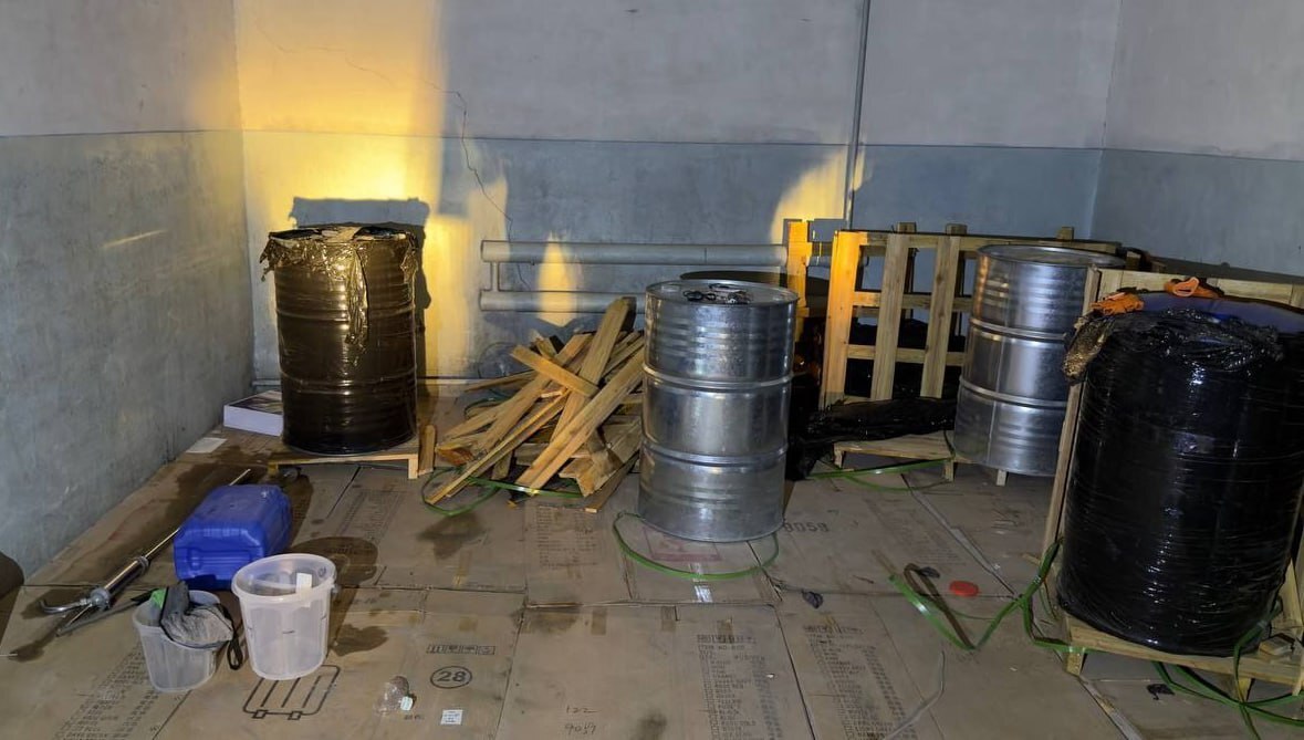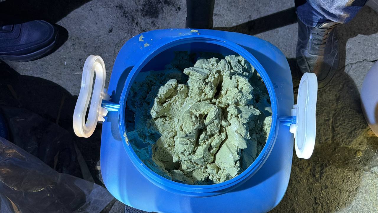 Также по показаниям задержанного был осмотрен склад, расположенный у обочины участка кольцевой автодороги Ташкента, проходящего через Зангиатинский район. В результате установлено, что там хранились 900 литров прекурсоров, используемых для изготовления синтетических наркотиков, расфасованных в 5 металлических и пластиковых емкостей.