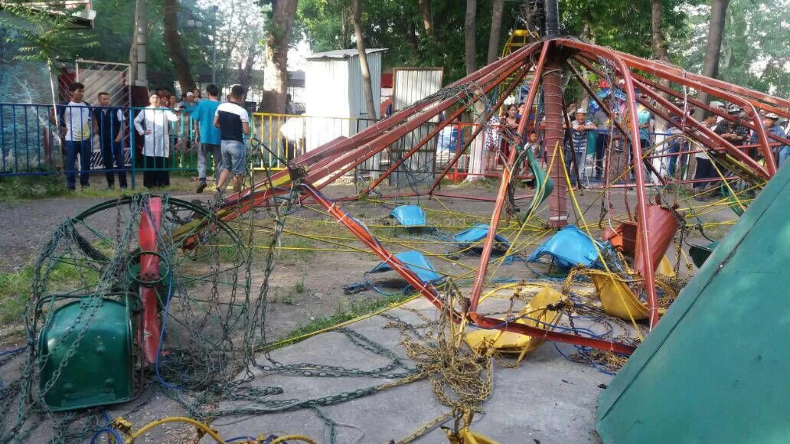 На одном из аттракционов сломалась металлическая конструкция, что привело к его падению.