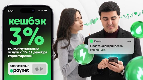 Paynet запускает повышенный кешбек 3% на коммунальные платежиГарантированный кешбек 3% на все коммунальные платежи в приложении Paynet. Акция действует по всей Республике Узбекистан с 15 по 31 декабря и, самое главное, доступна абсолютно всем пользователям приложения Paynet, даже новым.