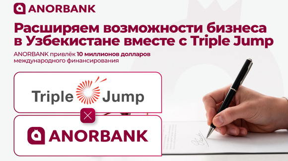 ANORBANK привлёк $10 млн от GGSF при поддержке Triple Jump для развития МСП в УзбекистанеANORBANK заключил кредитное соглашение на сумму 10 млн долларов США с фондом Global Gender-Smart Fund (GGSF) при содействии компании Triple Jump — ведущей международной инвестиционной управляющей компании, базирующейся в Нидерландах.