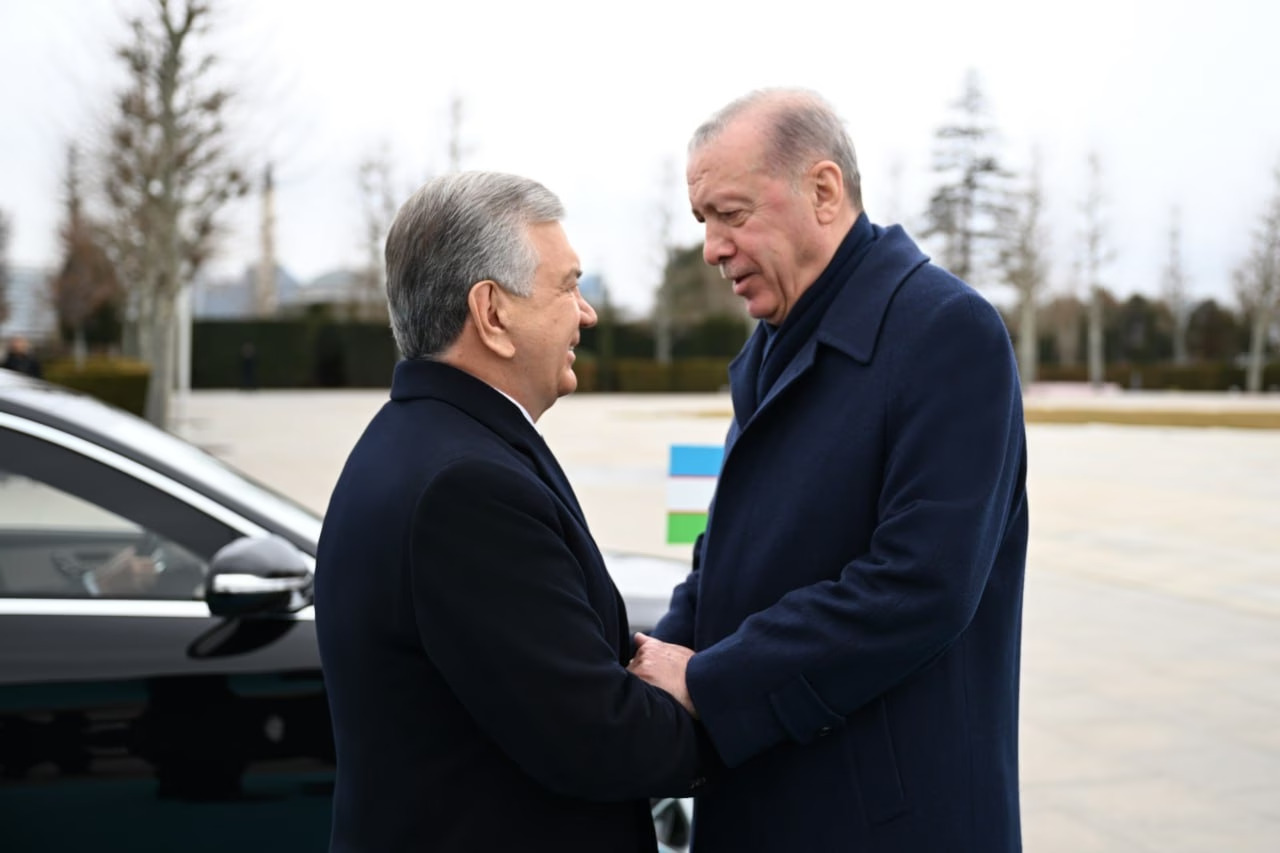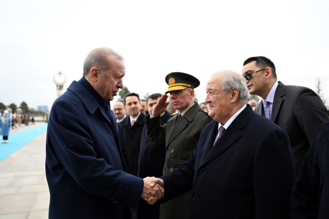 Давлатимиз раҳбарини Туркия президенти Режеп Таййип Эрдоған кутиб олди. Олий мартабали меҳмон шарафига қароргоҳ майдонида Фахрий қоровул саф тортди.
