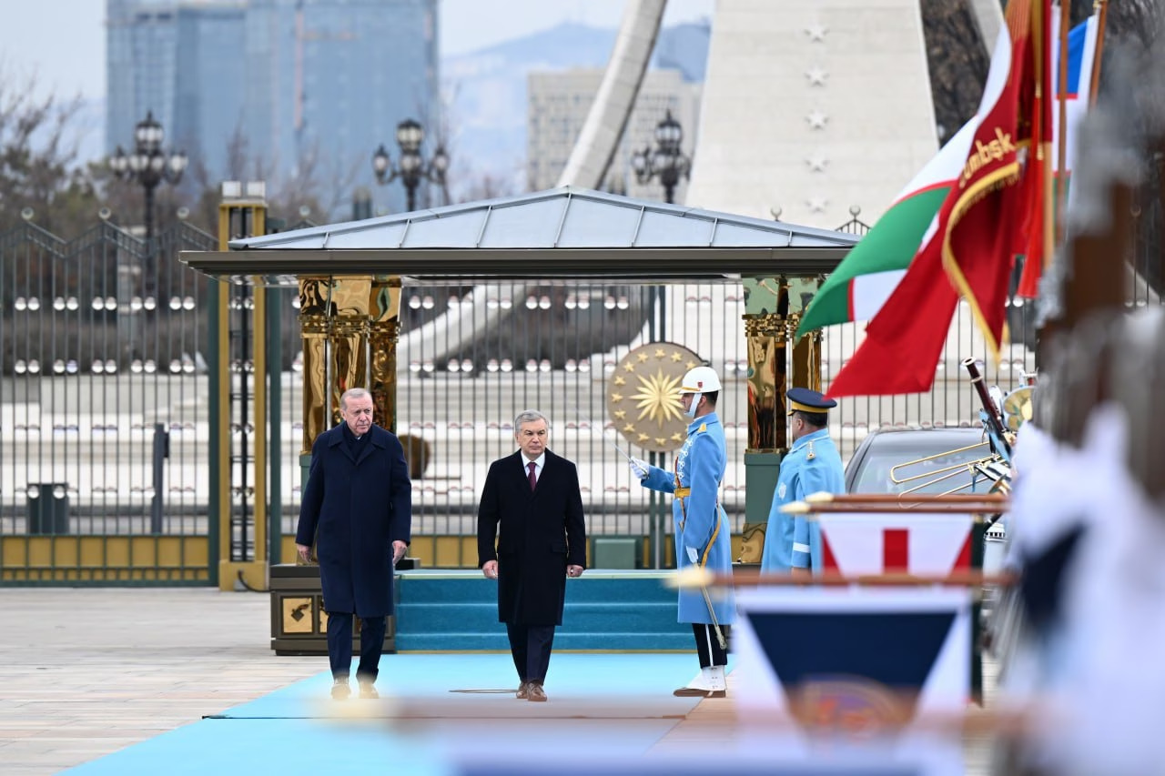Шавкат Мирзиёев ва Режеп Таййип Эрдоған шоҳсупага кўтарилиб, ҳарбий оркестр ижросида Ўзбекистон ва Туркия давлат мадҳиялари янгради. Давлат раҳбарлари Фахрий қоровул сафи олдидан ўтиб, расмий делегациялар аъзоларини қутладилар.
