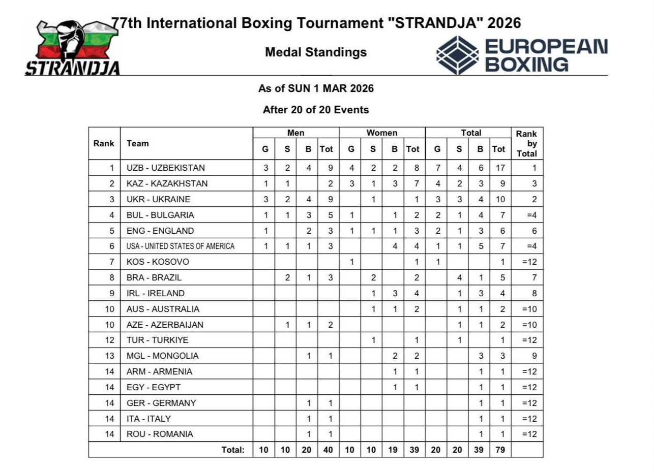 Ўзбекистон терма жамоаси 22 февраль - 1 март кунлари Болгариянинг София шаҳрида бўлиб ўтган бокс бўйича "Странжа" халқаро турнирида муваффақиятли иштирок этди. Мусобақа якунида ўзбекистонлик боксчилар 7 та олтин, 4 та кумуш ва 6 та бронза - жами 17 та медални қўлга киритиб, умумжамоа ҳисобида биринчи ўринни эгаллади.